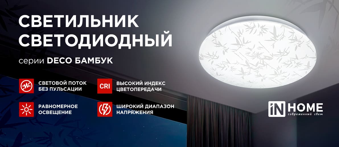 Откройте для себя светильники светодиодные серии DECO БАМБУК! Их светлый матовый корпус и стилизованный принт бамбуковых листьев не только привлекают внимание, но и, согласно учению фен-шуй, даруют удачу, счастье и процветание в ваш дом.