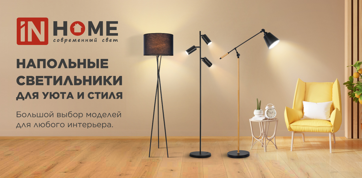 Габариты и конфигурация светильника играют определяющую роль. Его размеры должны гармонировать с площадью помещения и безупречно сочетаться с обстановкой. Для малогабаритной комнаты предпочтительны модели с некрупными абажурами или без них. К примеру, светодиодный торшер ТСО 01Ч от IN HOME отличается компактностью, но предлагает 3 уровня яркости, 71 динамический световой режим и регулировку цветовой температуры с пульта. Его оригинальный внешний вид и современная стилистика послужит выразительным акцентом в декоре.