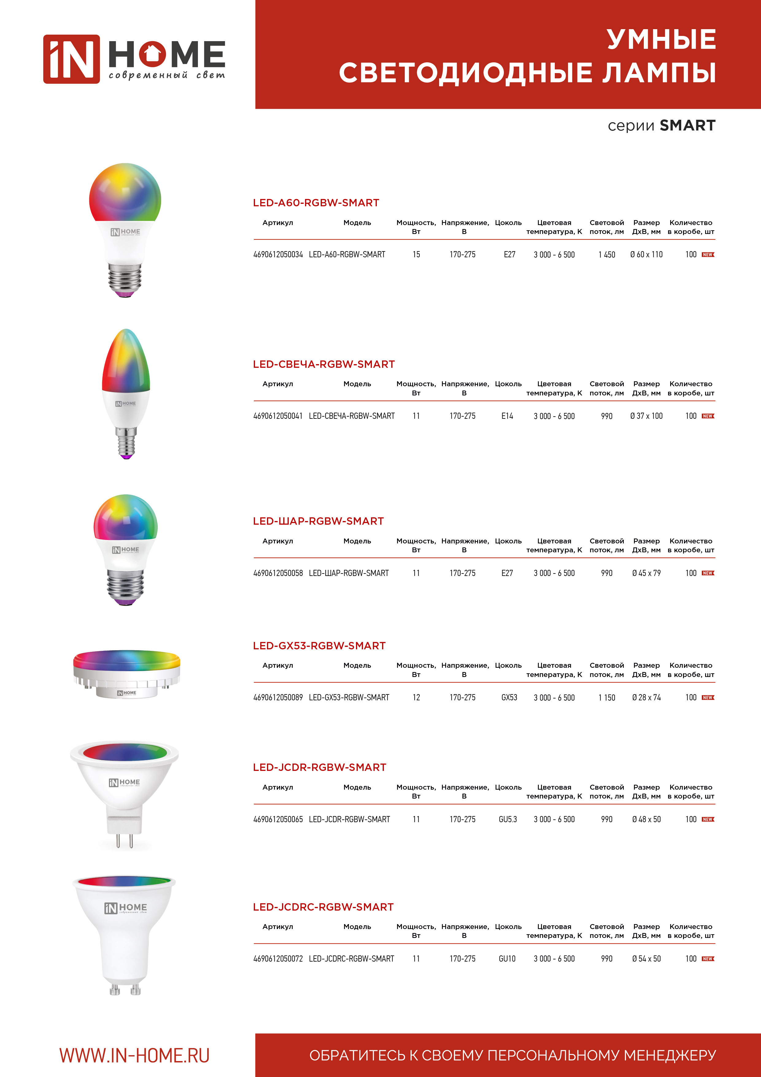 С помощью интуитивно понятной оболочки IN HOME SMART, пользователи могут удаленно управлять одной или несколькими лампами всего одним нажатием. Создание сценариев освещения и установка таймеров становятся простыми задачами благодаря мобильному приложению и голосовому управлению с помощью популярных ассистентов, таких как Алиса.