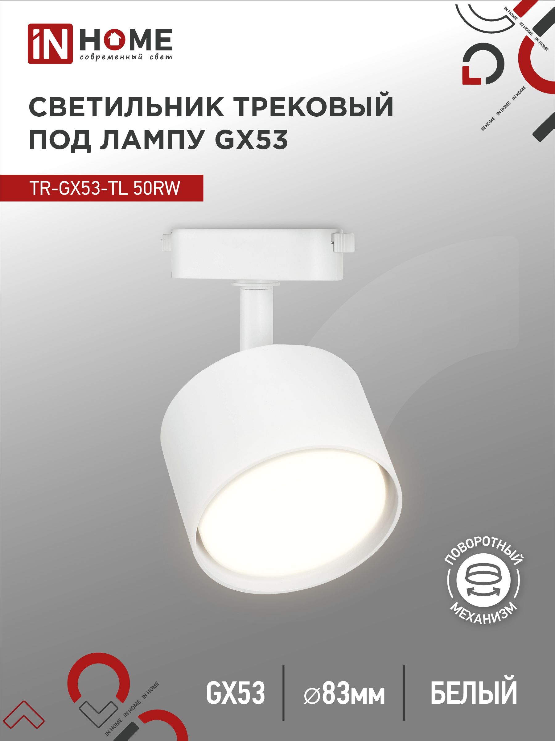 Светильник трековый TR-GX53-TL 50RW под лампу GX53 белый IN HOME