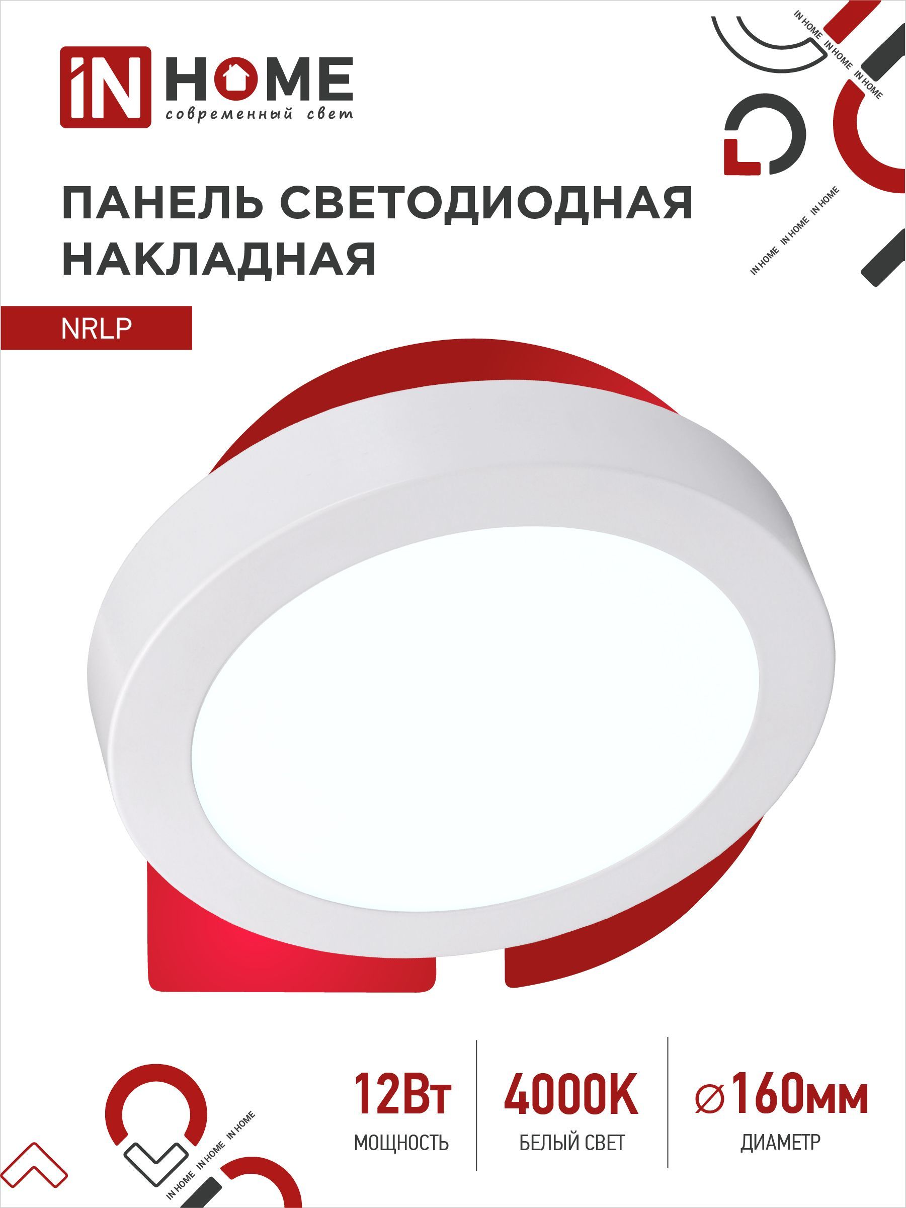 Панель светодиодная накладная круглая NRLP 12Вт 230В 4000К 840Лм 160мм белая IP40 IN HOME