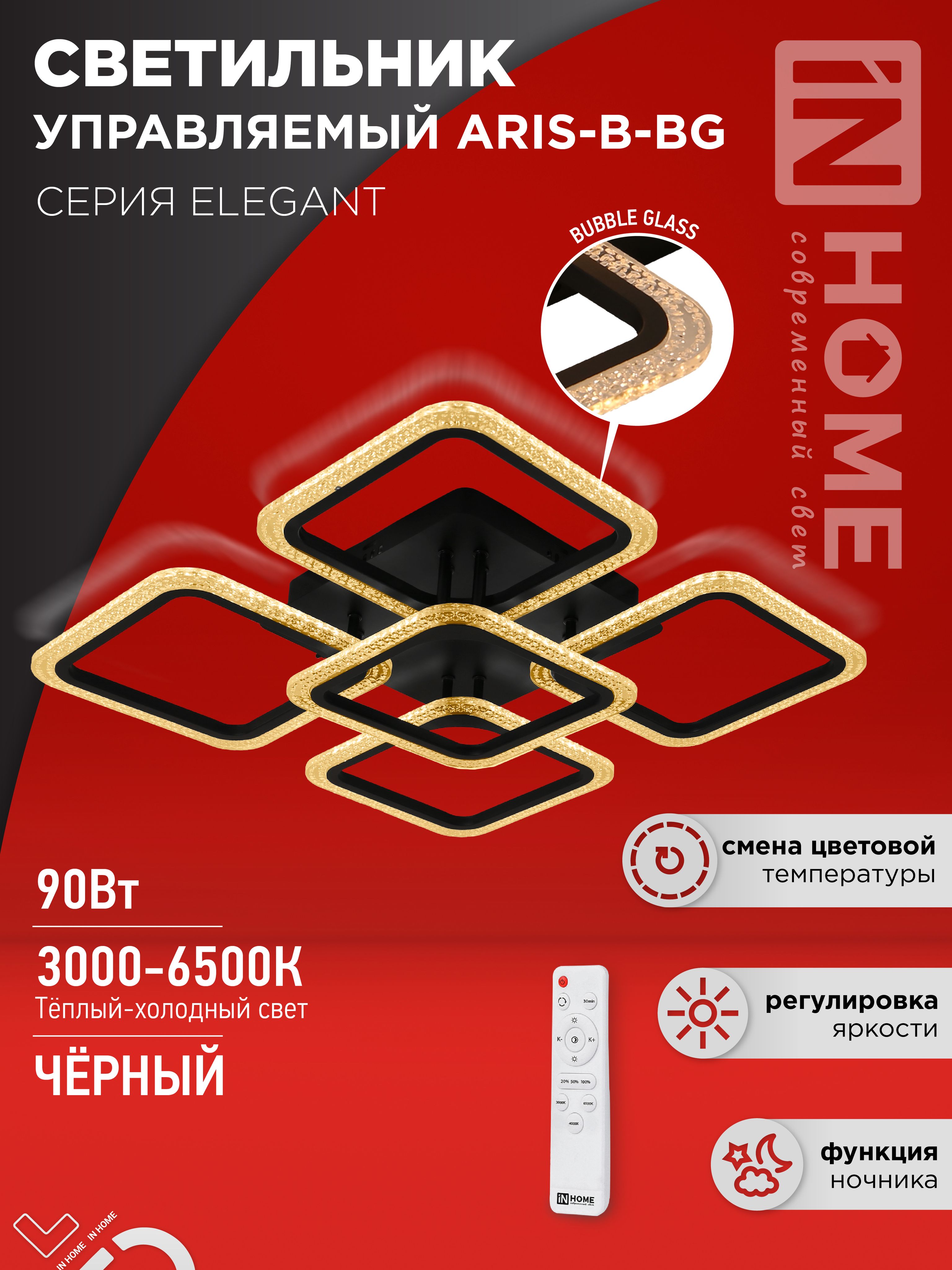 Светильник светодиодный ELEGANT ARIS-B-ВG 90Вт 230В 3000-6500K 7000Лм 557х557х115мм пульт ДУ черный IN HOME