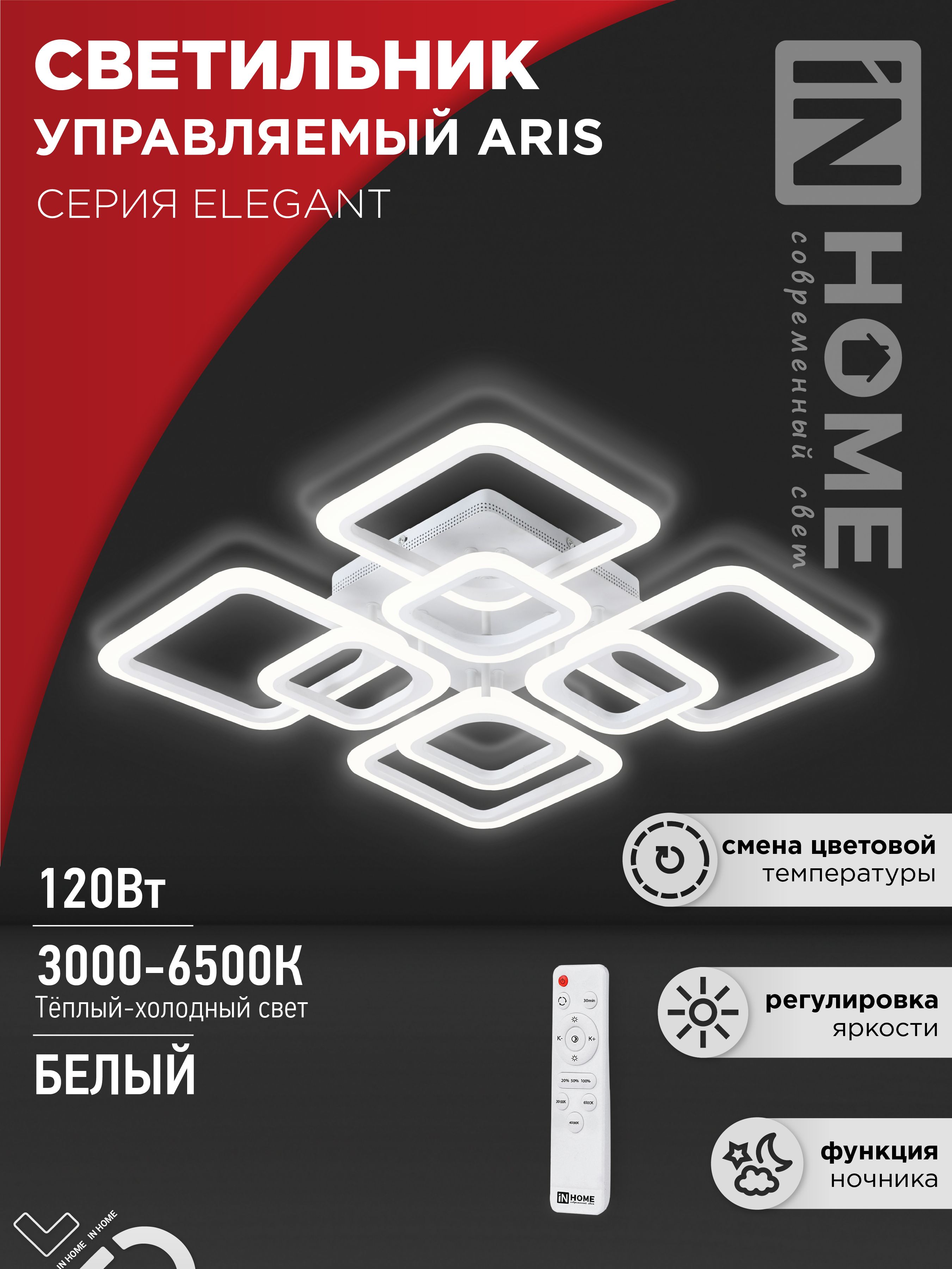 Светильник светодиодный ELEGANT ARIS-W 120Вт 230В 3000-6500K 590х590х130мм c пультом ДУ белый IN HOME