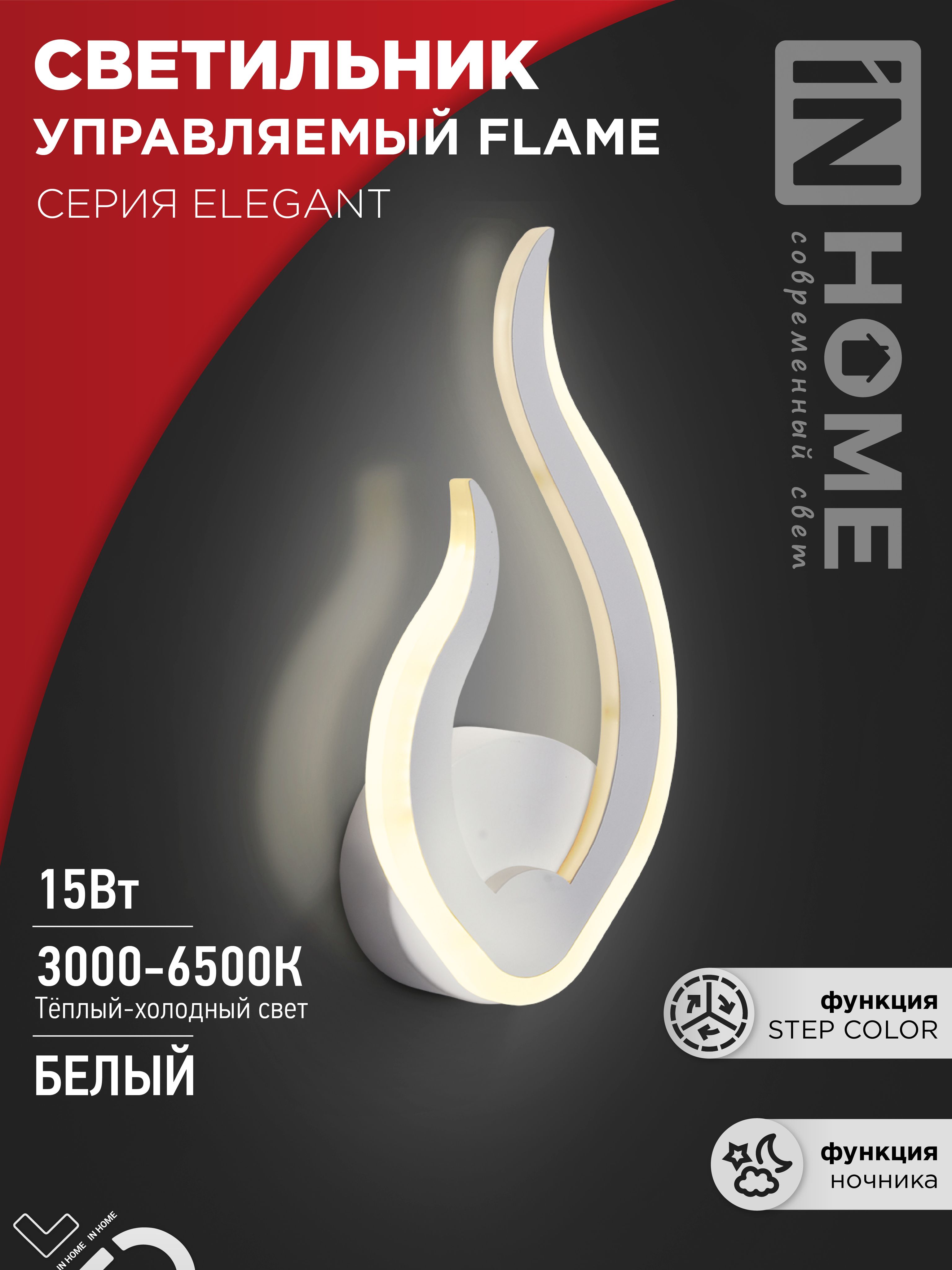 Светильник светодиодный ELEGANT FLAME 15Вт 230В 3000-6500K 1200Лм STEP COLOR белый IN HOME