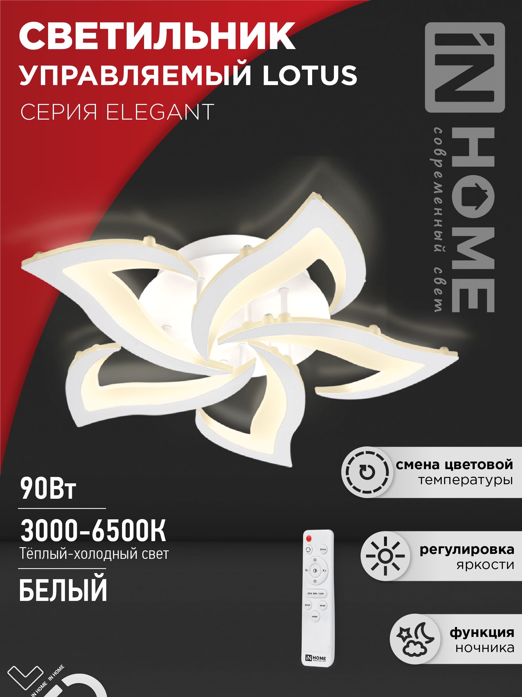 Светильник светодиодный ELEGANT LOTUS 90Вт 230В 3000-6500K 590х570х90мм c пультом ДУ белый IN HOME
