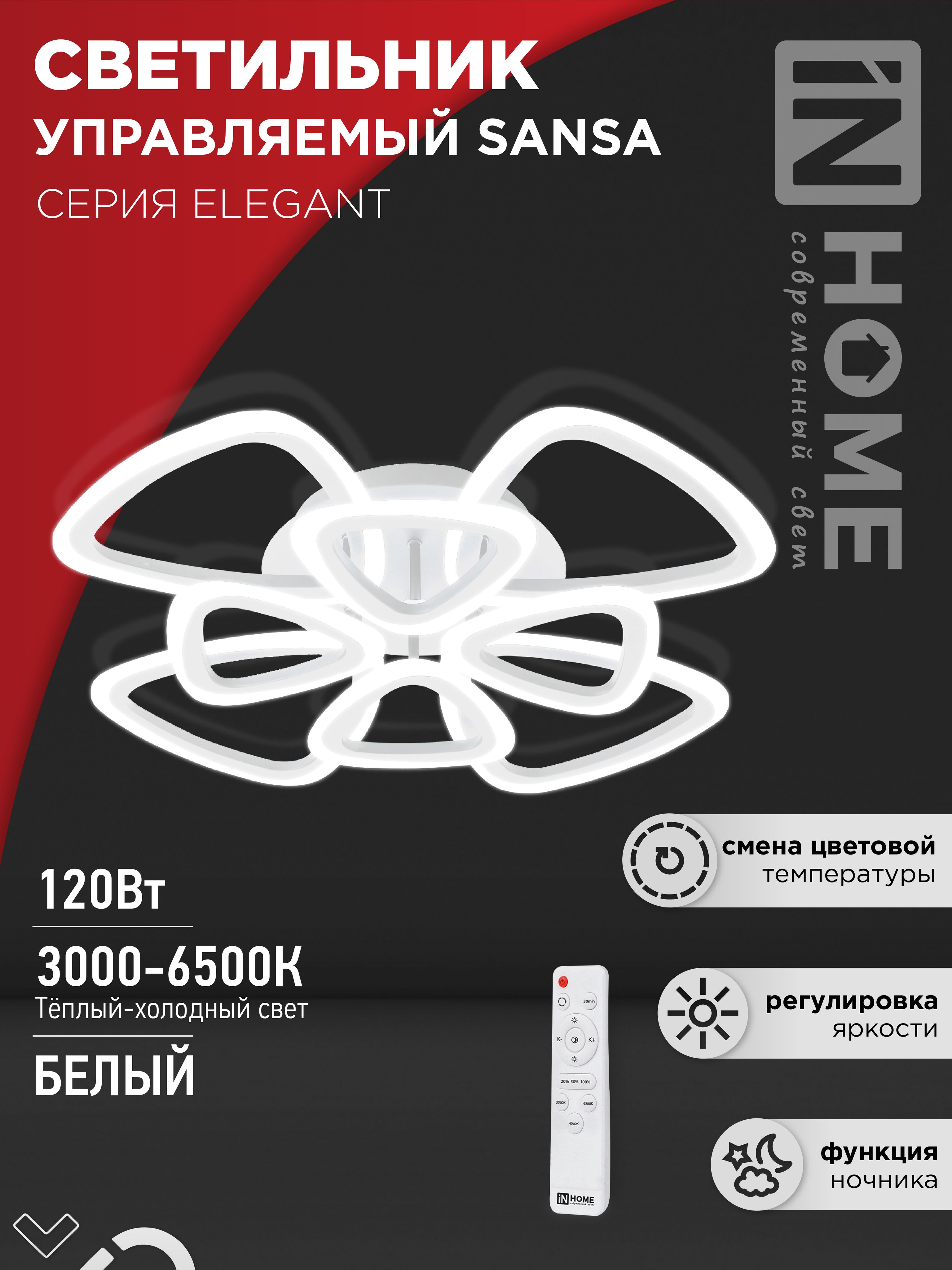Светильник светодиодный ELEGANT SANSA-W 120Вт 230В 3000-6500K 650х650х130мм c пультом ДУ белый IN HOME
