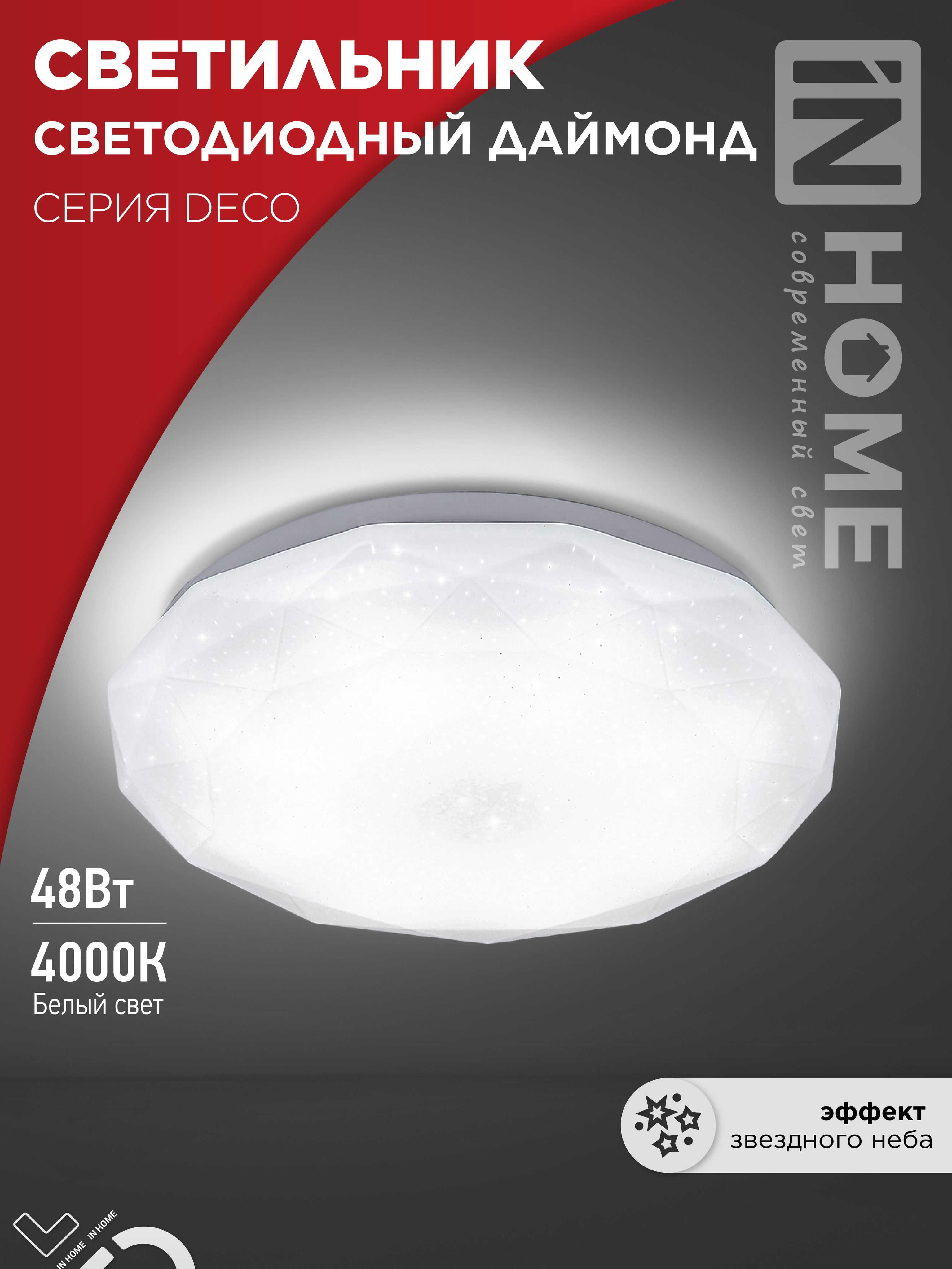 Светильник светодиодный серии DECO ДАЙМОНД 48Вт 230В 4000К 4320Лм 380х55мм IN HOME