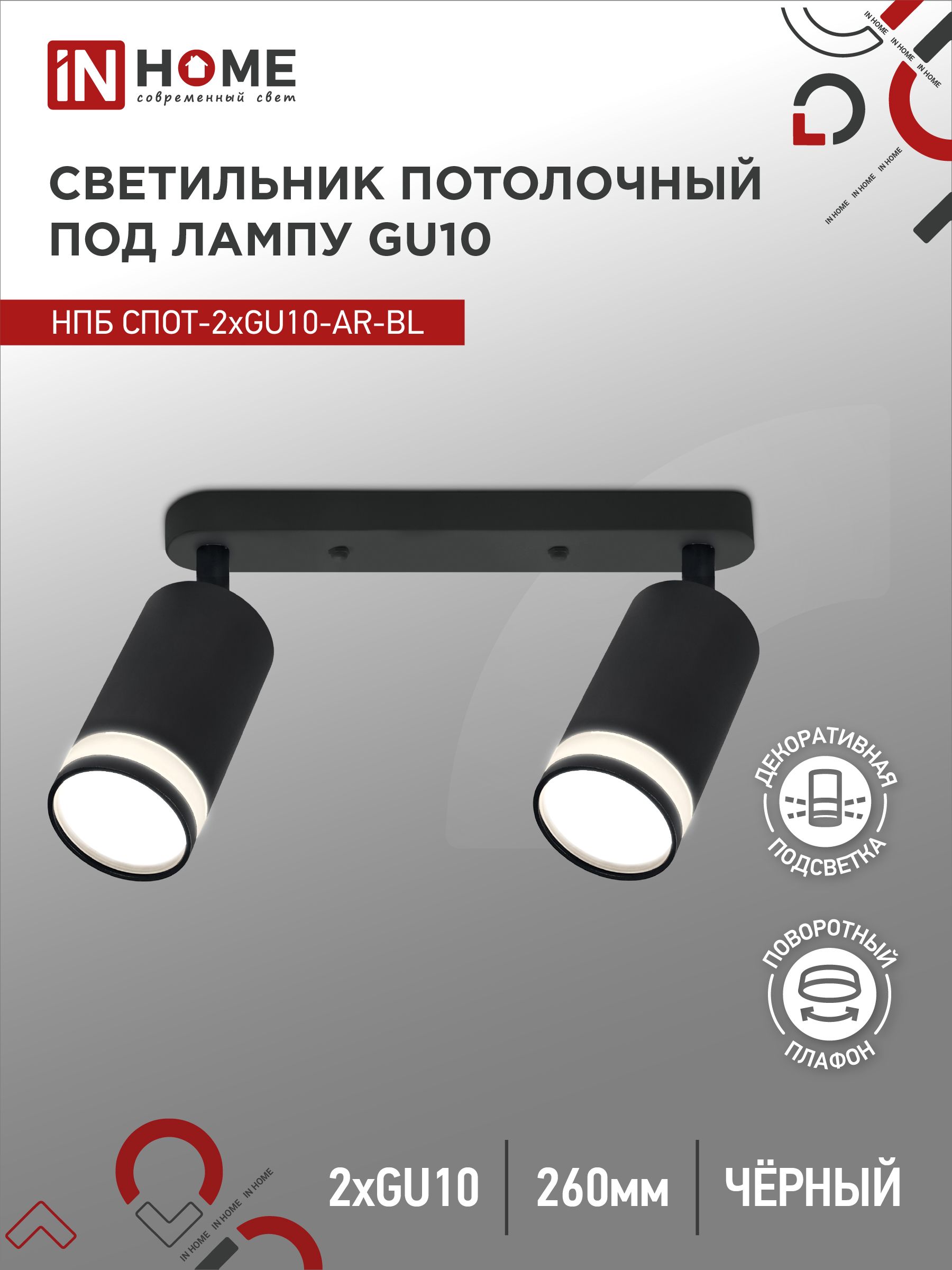 Светильник потолочный НПБ СПОТ-2xGU10-AR-BL под лампу GU10 260х55х135мм линейный черный IN HOME