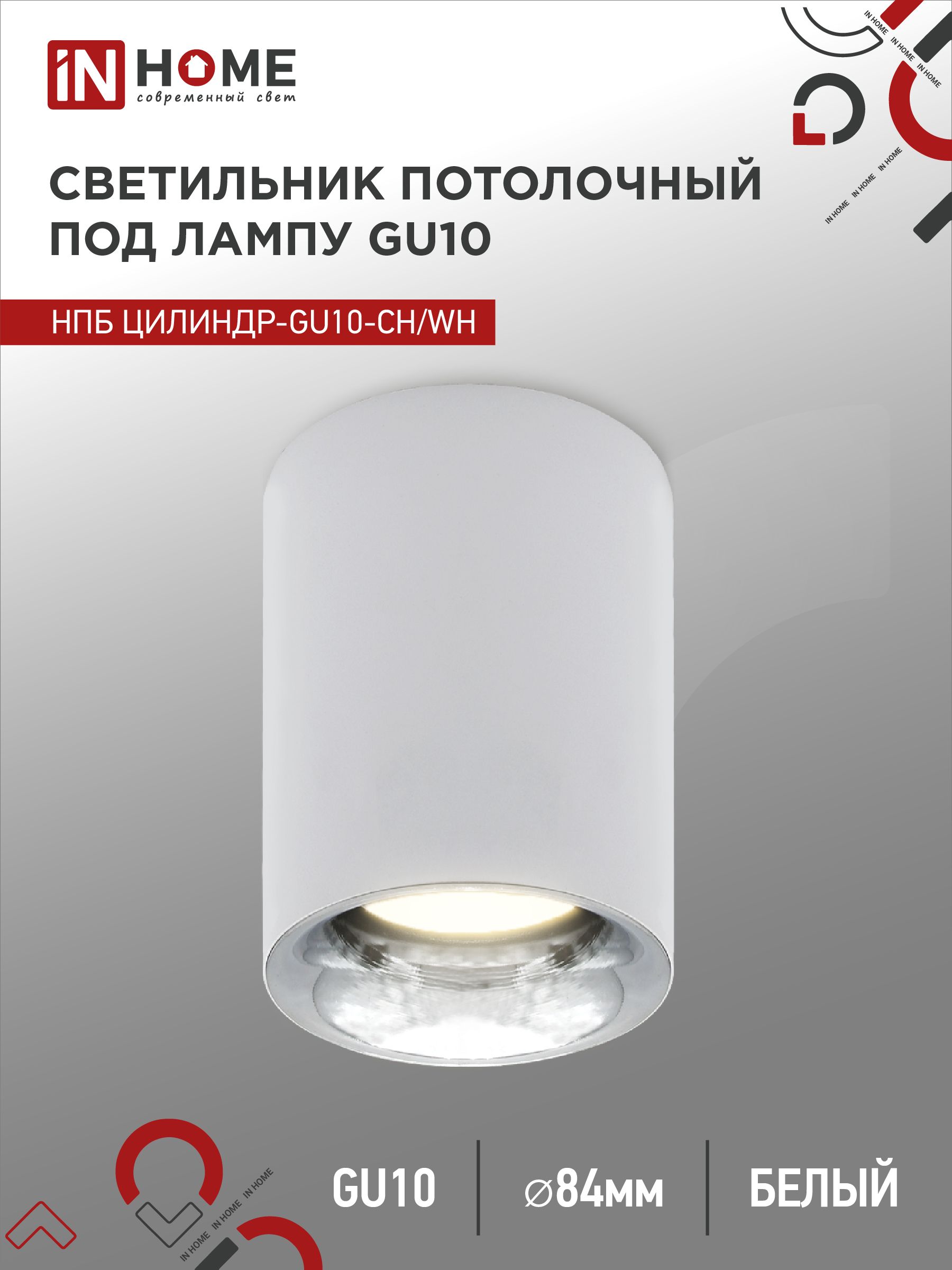 –Светильник потолочный НПБ ЦИЛИНДР-GU10-CH/WH под лампу GU10 70x100мм белый IN HOME