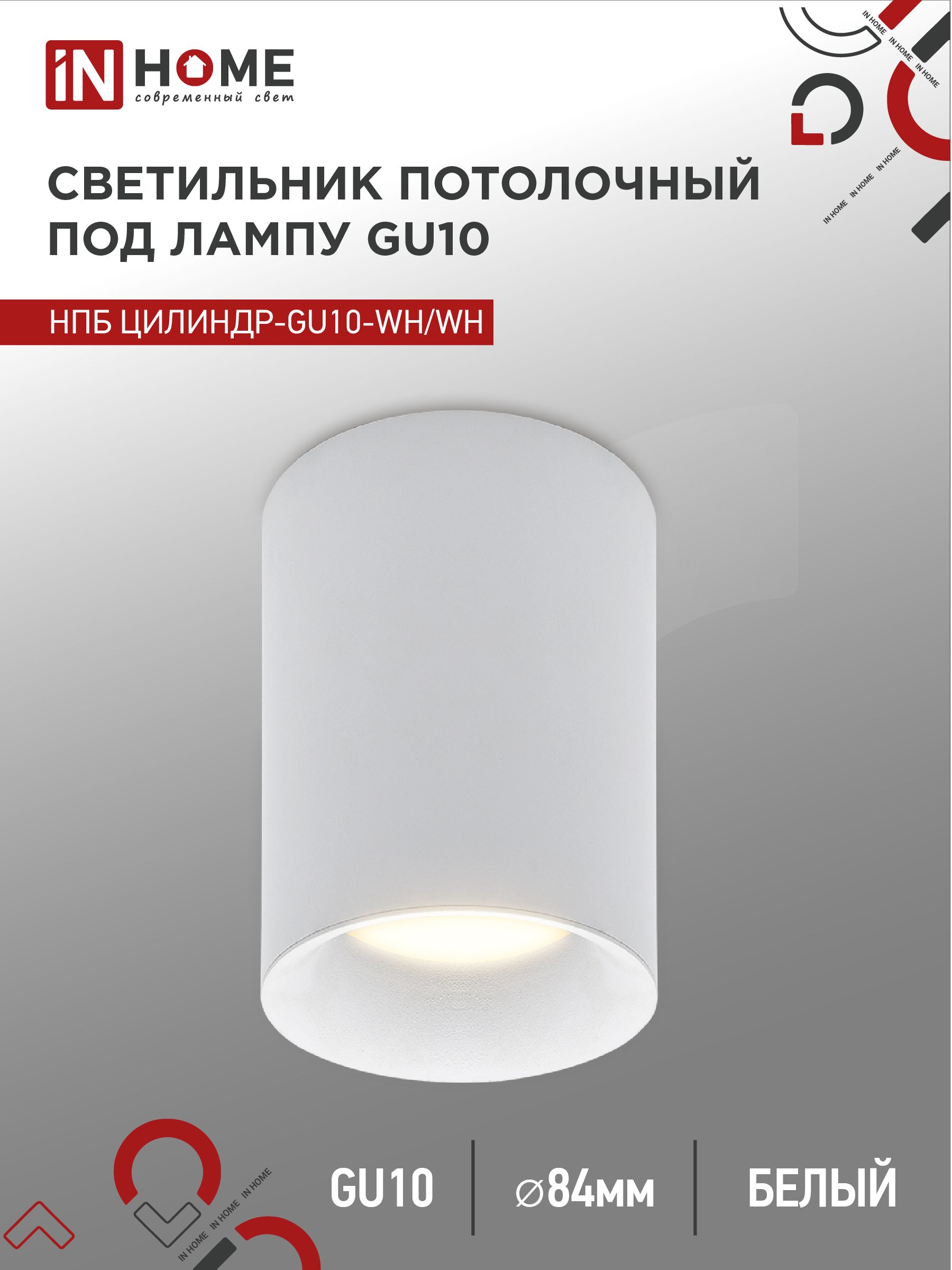 Светильник потолочный НПБ ЦИЛИНДР-GU10-WH/WH под лампу GU10 70x100мм белый IN HOME
