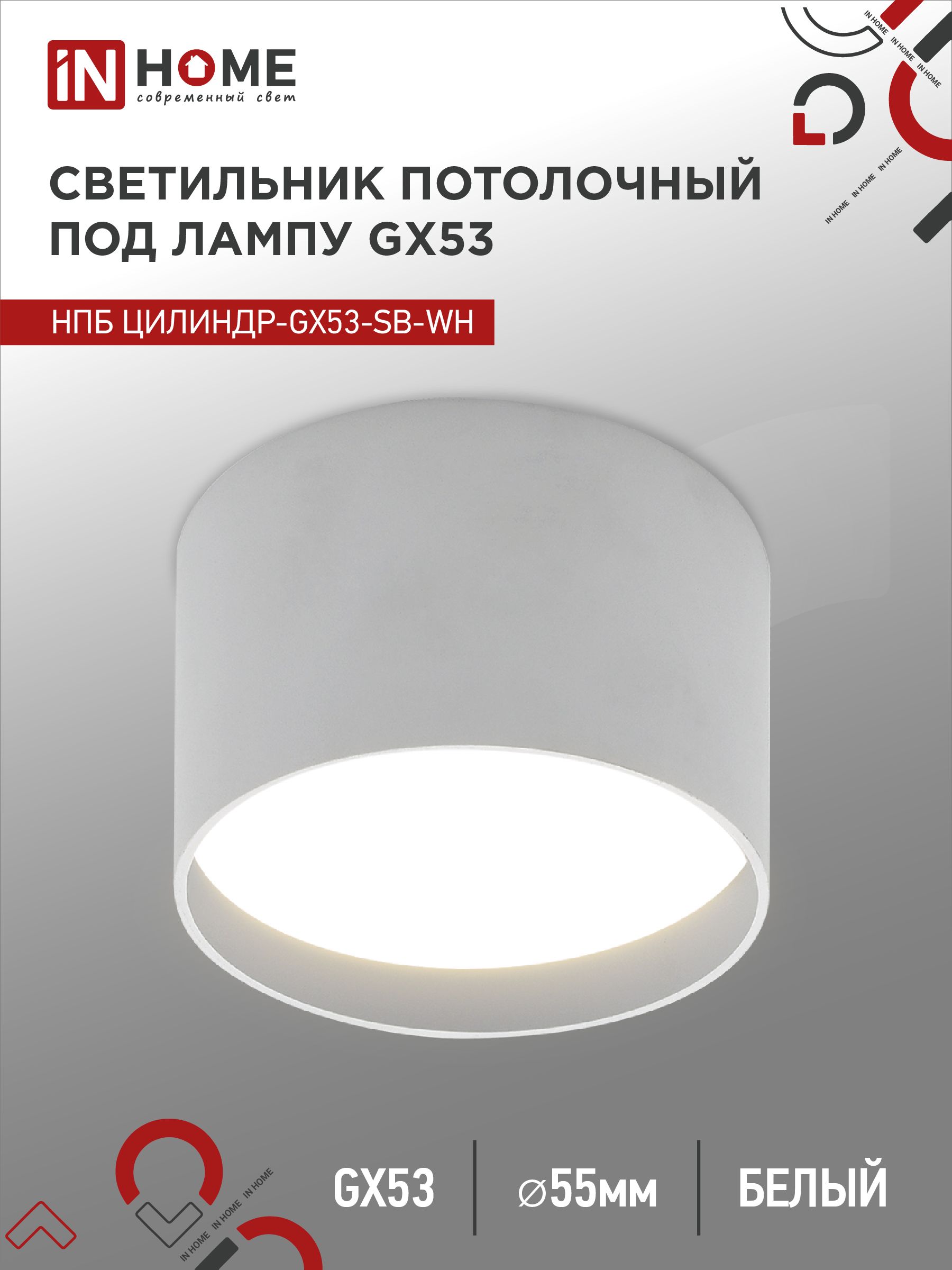 Светильник потолочный НПБ ЦИЛИНДР-GX53-SB-WH под лампу GX53 85x55мм белый IN HOME