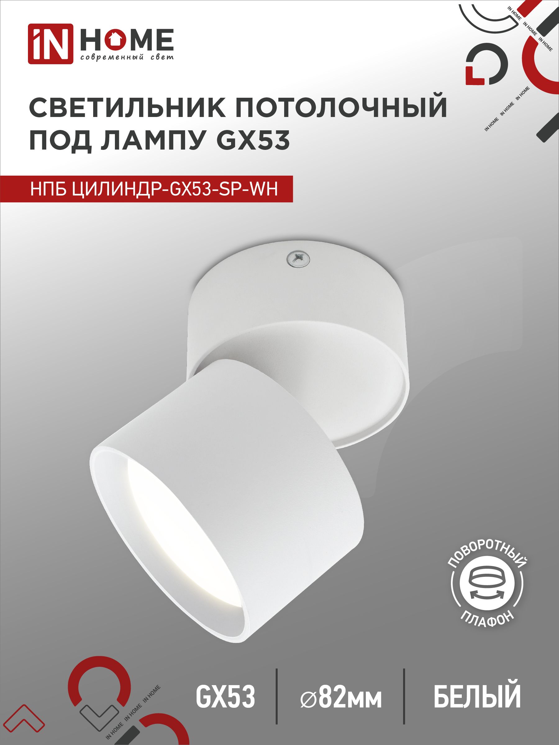Светильник потолочный НПБ ЦИЛИНДР-GX53-SP-WH под лампу GX53 80х80мм белый IN HOME