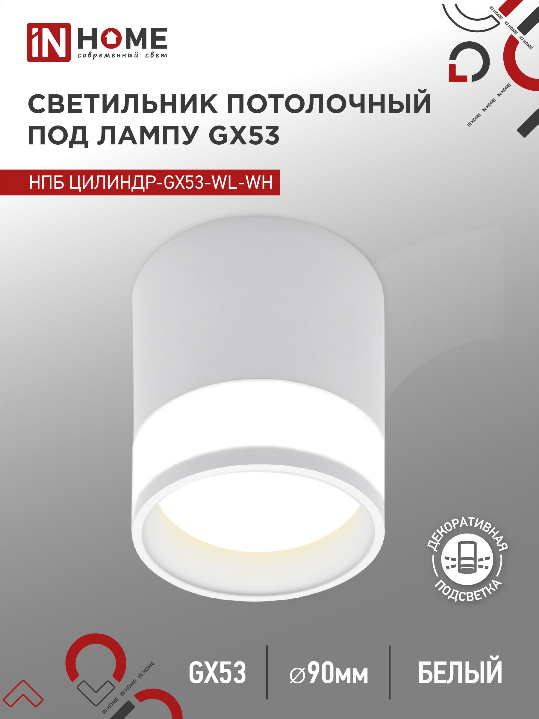 Светильник потолочный НПБ ЦИЛИНДР-GX53-WL-WH под лампу GX53 90х115мм белый IN HOME