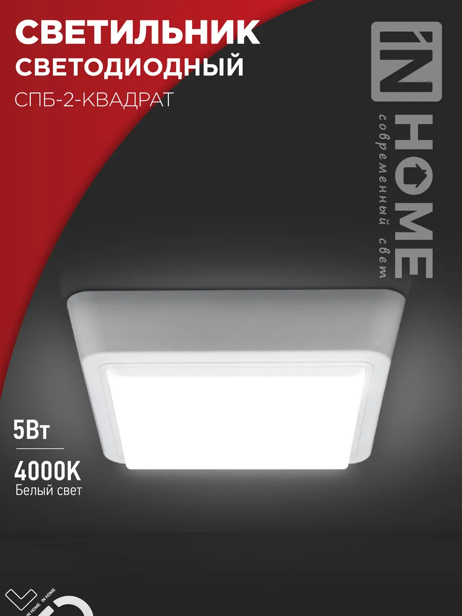Светильник светодиодный СПБ-2-КВАДРАТ 5Вт 230В 4000К 400Лм 140мм белый IN HOME