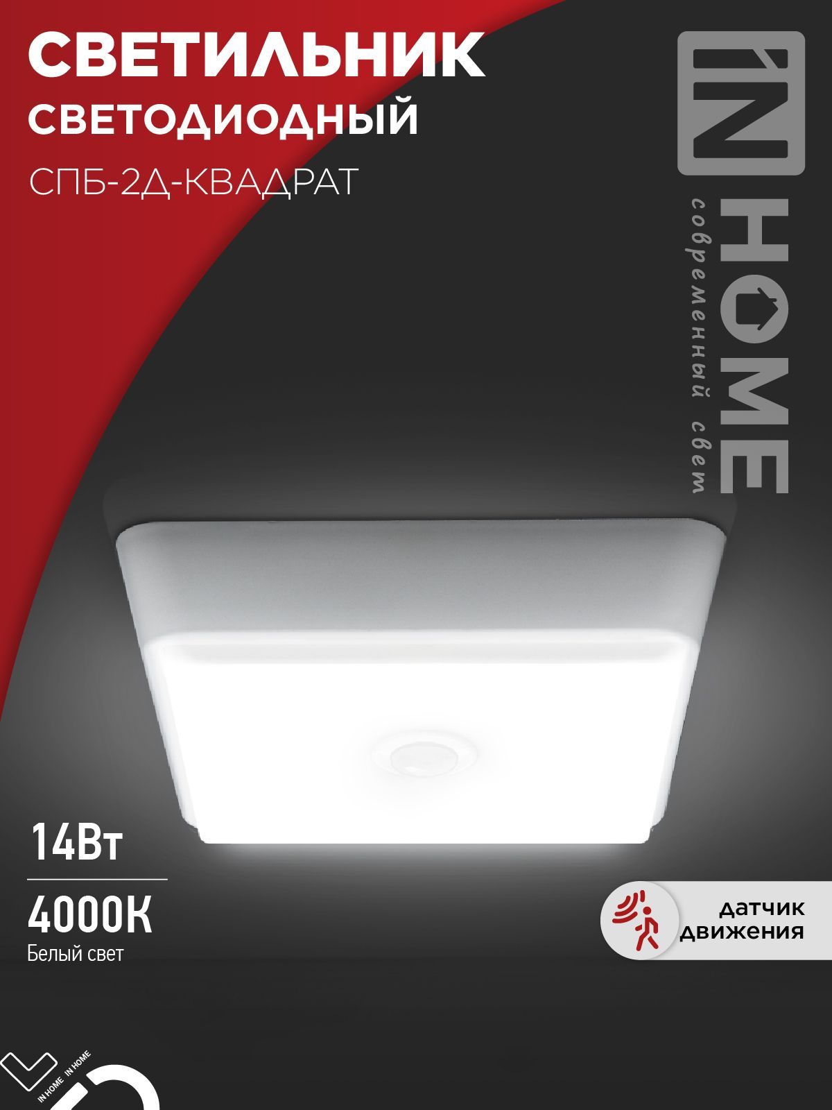 Светильник светодиодный СПБ-2Д-КВАДРАТ 14Вт 4000К 1100Лм 190мм с датчиком белый IN HOME