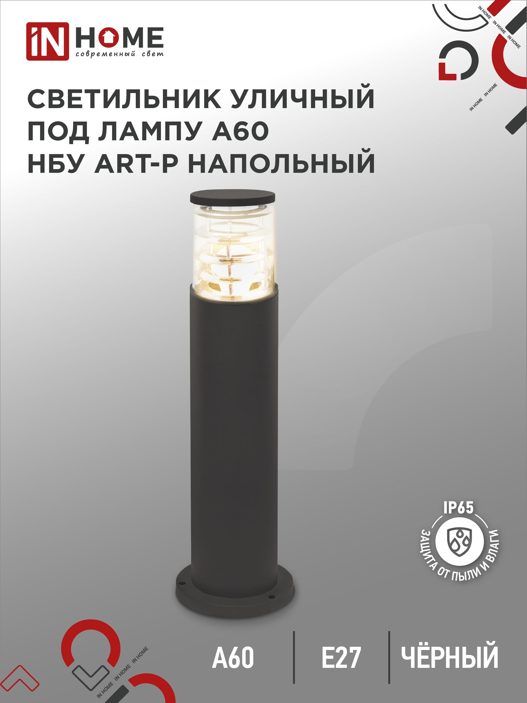 Светильник уличный напольный НБУ ART-PT-1xA60-BL алюминиевый 600мм черный IP54 IN HOME