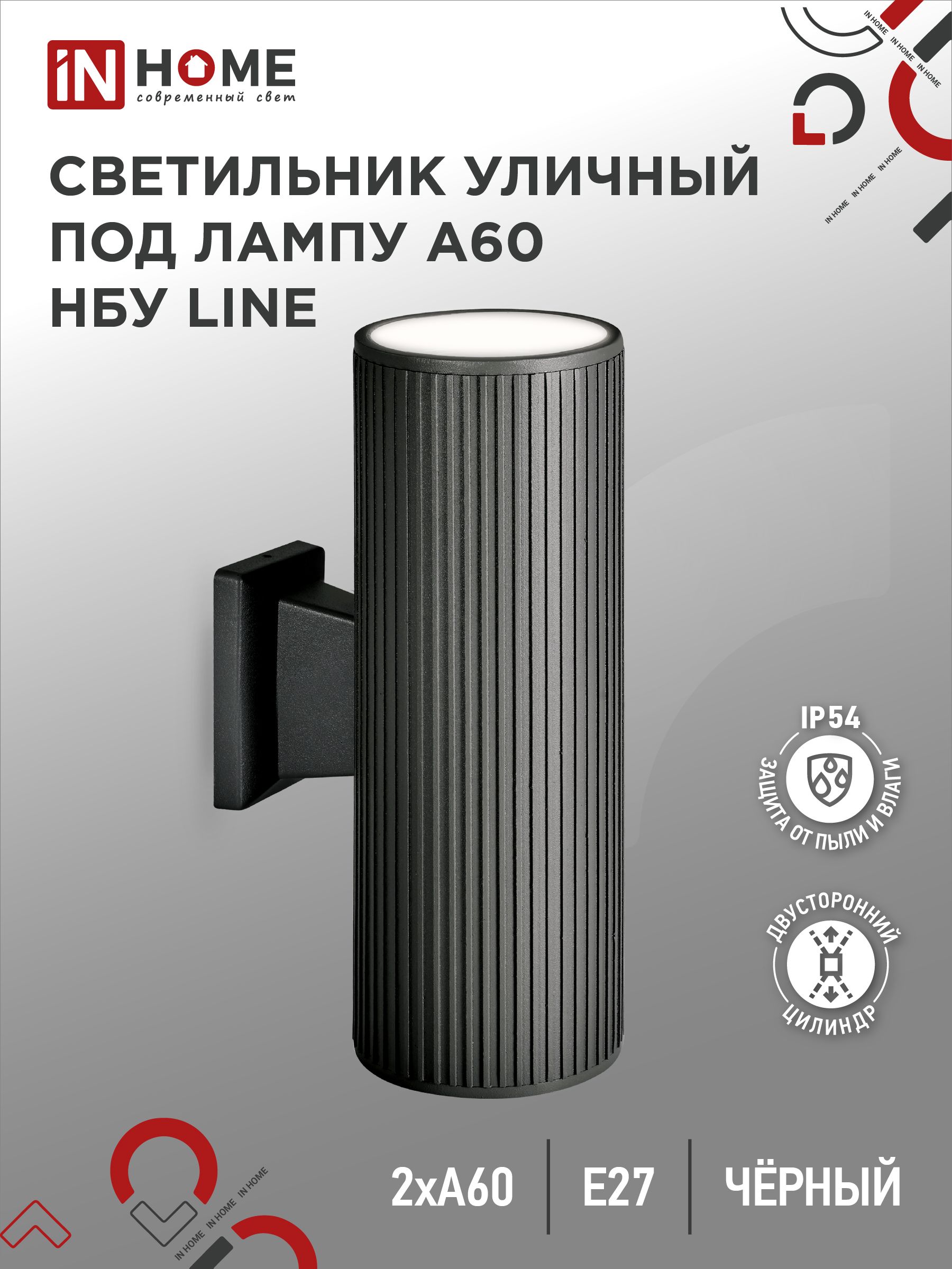 Светильник уличный настенный двусторонний НБУ LINE-2хA60-BL алюминиевый черный IP54 IN HOME