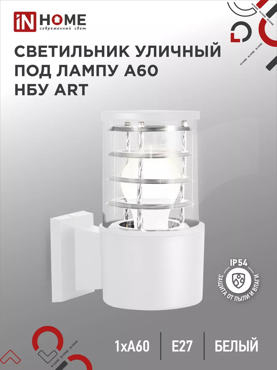 Светильник уличный настенный односторонний НБУ ART-1хA60-WH алюминиевый белый IP54 IN HOME